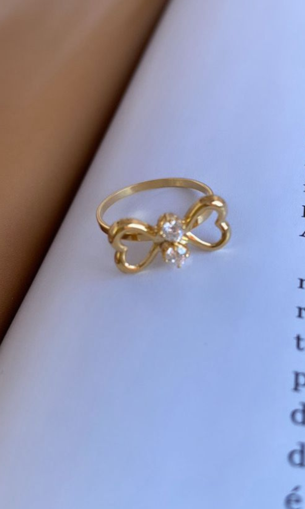 Seu design elegante e significativo o torna adequado para uso diário ou para ocasiões especiais. Este anel é uma escolha para expressar sentimentos profundos e eternos. Um belo anel falange de laço em banho ouro 18k com duas pedras de zircônias